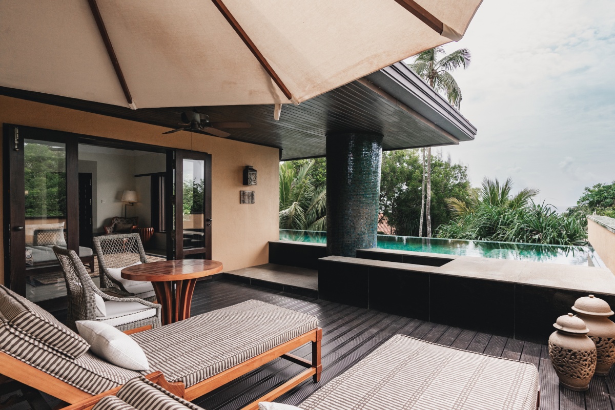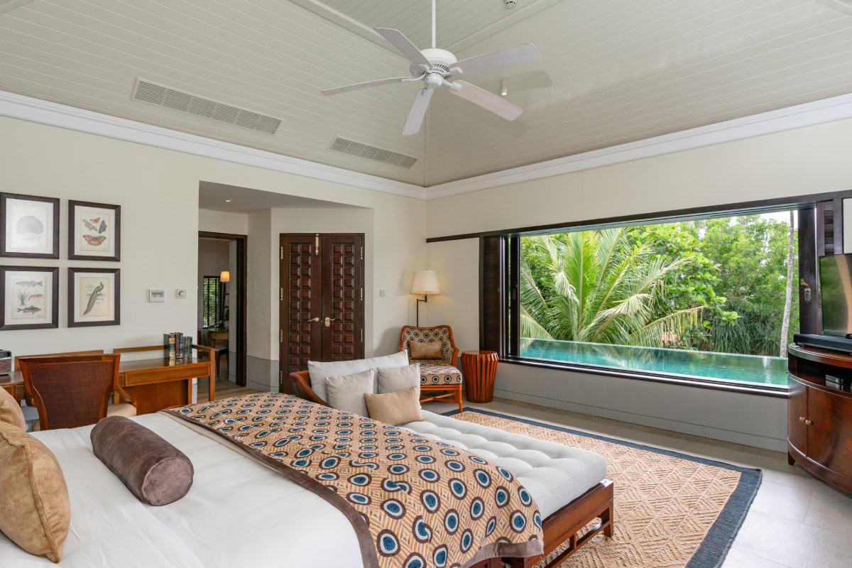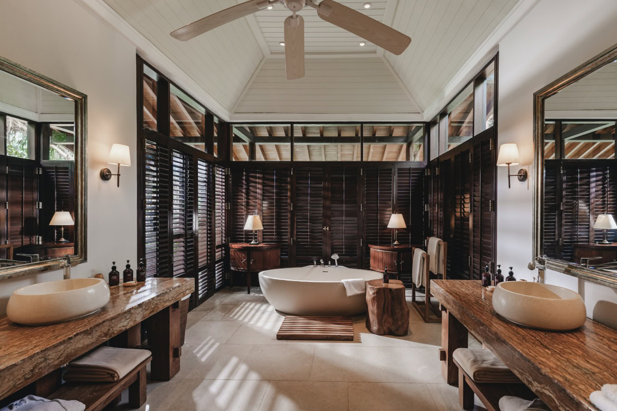 Spanning across a collection of terracotta-roofed villas and suites, each space is designed with understated sophistication—think airy interiors, private terraces, and shared or private pools nestled in lush gardens. The iconic moon pool at the cliff’s edge offers panoramic views of the Indian Ocean, while the family-friendly Cove Pool and secluded beach club add to the resort’s relaxed yet elevated atmosphere.